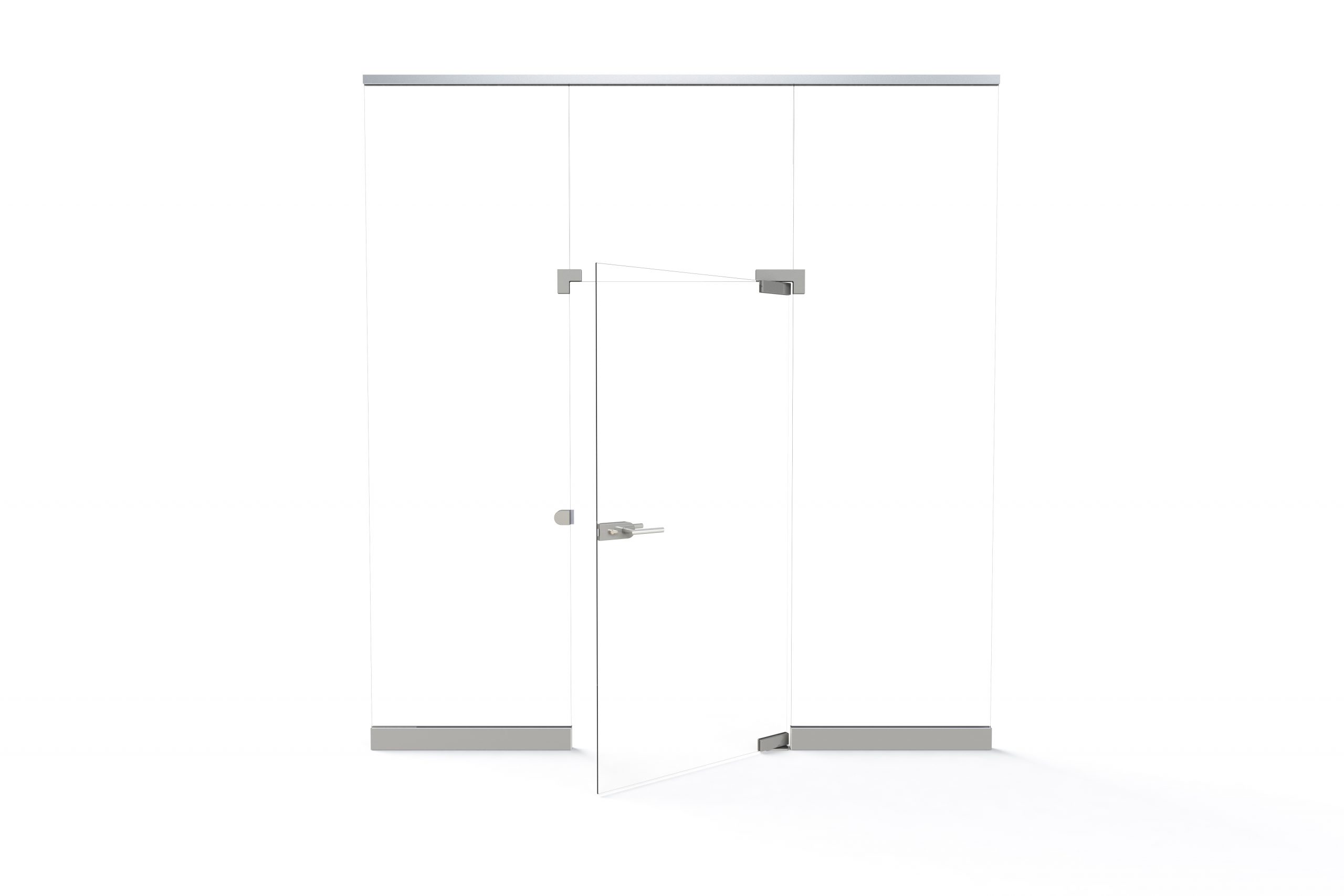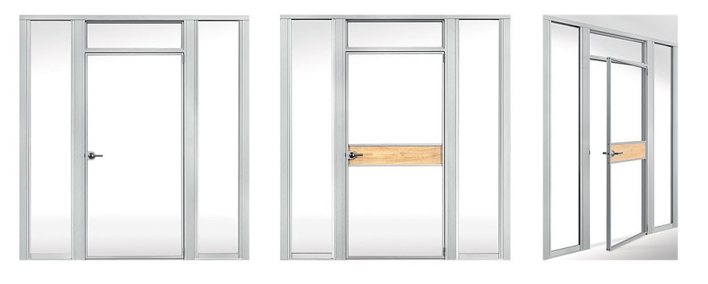 Můžeme instalovat jednokřídlé nebo dvoukřídlé dveře, celoskleněné, s hliníkovým rámem nebo dřevěným rámem. Nabízíme celou řadu tradičních nebo elektronických zámků dostupných na trhu zajišťujících ochranu před neoprávněným vstupem do oddělených místností.