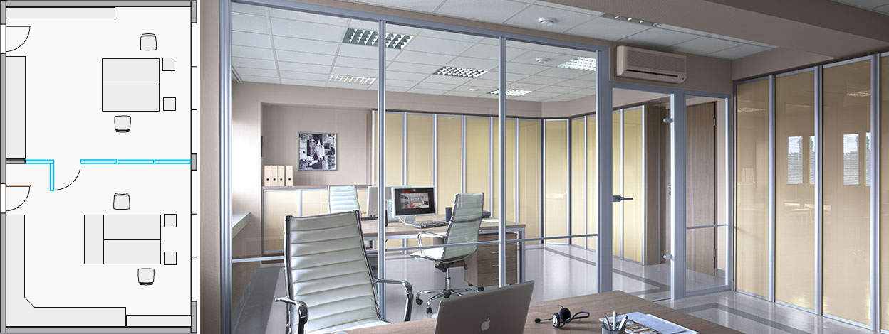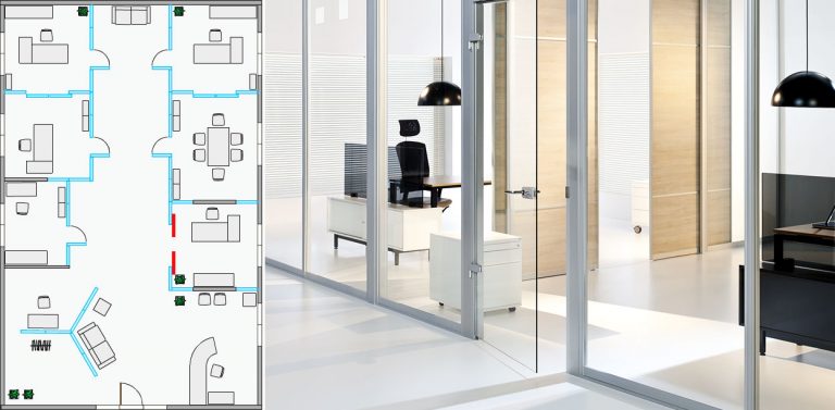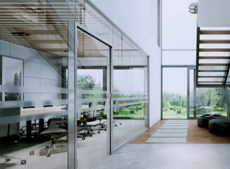 - Systémová příčka s dvoustěnným sklem