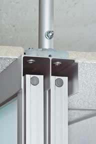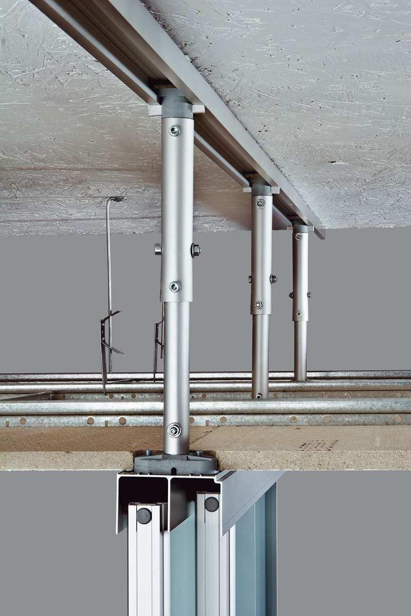 Díky speciálním úchytům je možné upevnit stěny k desce v místnostech se zavěšeným stropem, nad kterým mohou běžet technická zařízení. Přichycení zaručuje spolehlivé a pevné uchycení horních profilů. Maximální vzdálenost mezi stropy a deskou je 60 cm a minimální je 11,5 cm. Systém instalace nevyžaduje žádné další stavební práce.